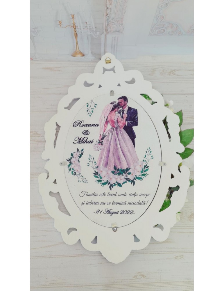 Oglinda miresei din lemn personalizata nuante alb si verde