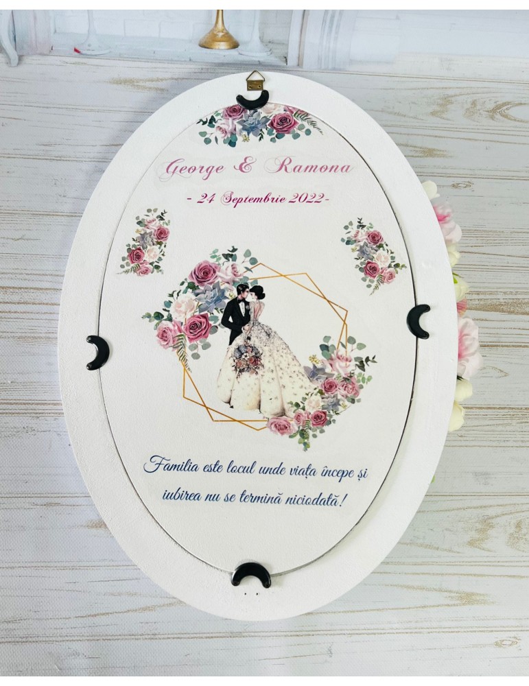 Oglinda miresei din lemn personalizata nuante roz