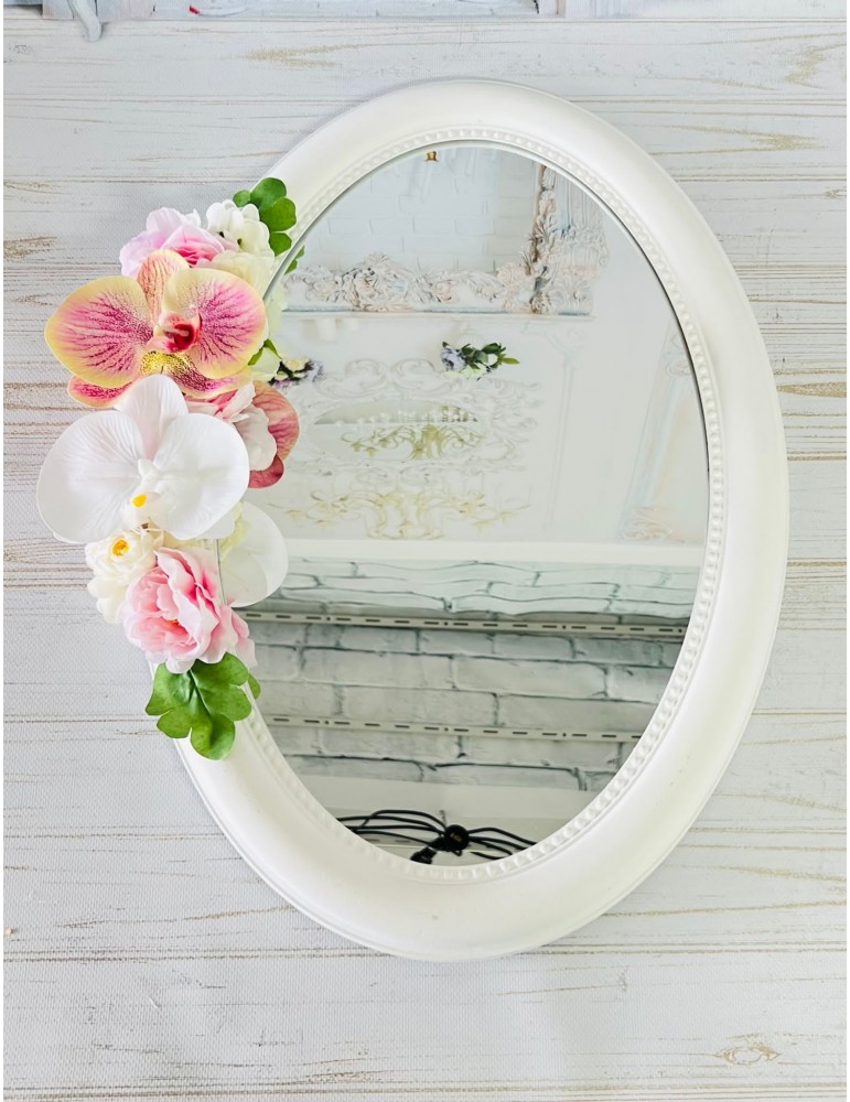 Oglinda miresei din lemn personalizata nuante alb si roz