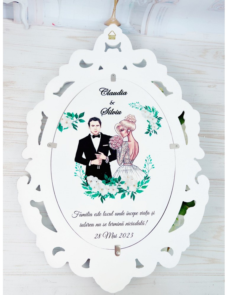 Oglinda miresei din lemn personalizata cu nuante alb si verde