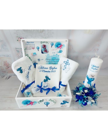 Descoperă seturile de botez personalizate pentru baieti, create pentru a transforma ceremonia de botez într-un moment cu adevărat special. Fiecare element al setului este realizat cu atenție la detalii și personalizat pentru a reflecta tematica dorită, oferindu-ți posibilitatea să păstrezi amintiri prețioase pentru o viață întreagă.