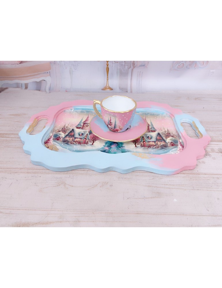 Tava si ceasca de cafea personalizata cu tematica de Craciun