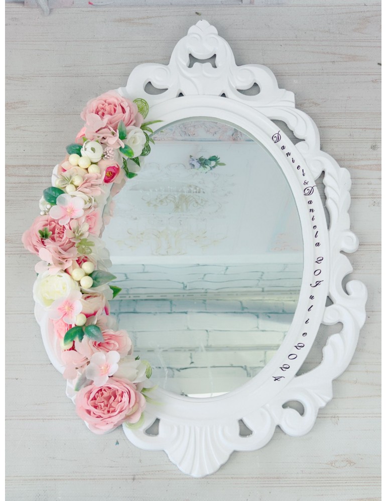 In cazul oglinzilor cu flori, pot exista mici diferente in ceea ce priveste compozitia florala in functie de disponibilitatea florilor in stoc la furnizor.