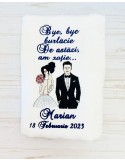 Pretul este pentru un singur prosop ginere si include personalizarea cu numele mirilor, data evenimentului si citatul preferat.