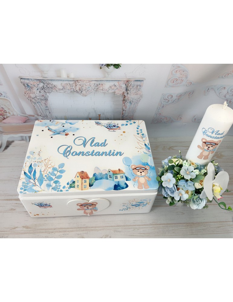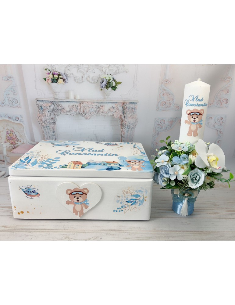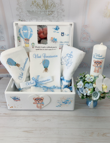 Ce contine setul de botez cu tematica " Ursulet si balon cu aer cald"?