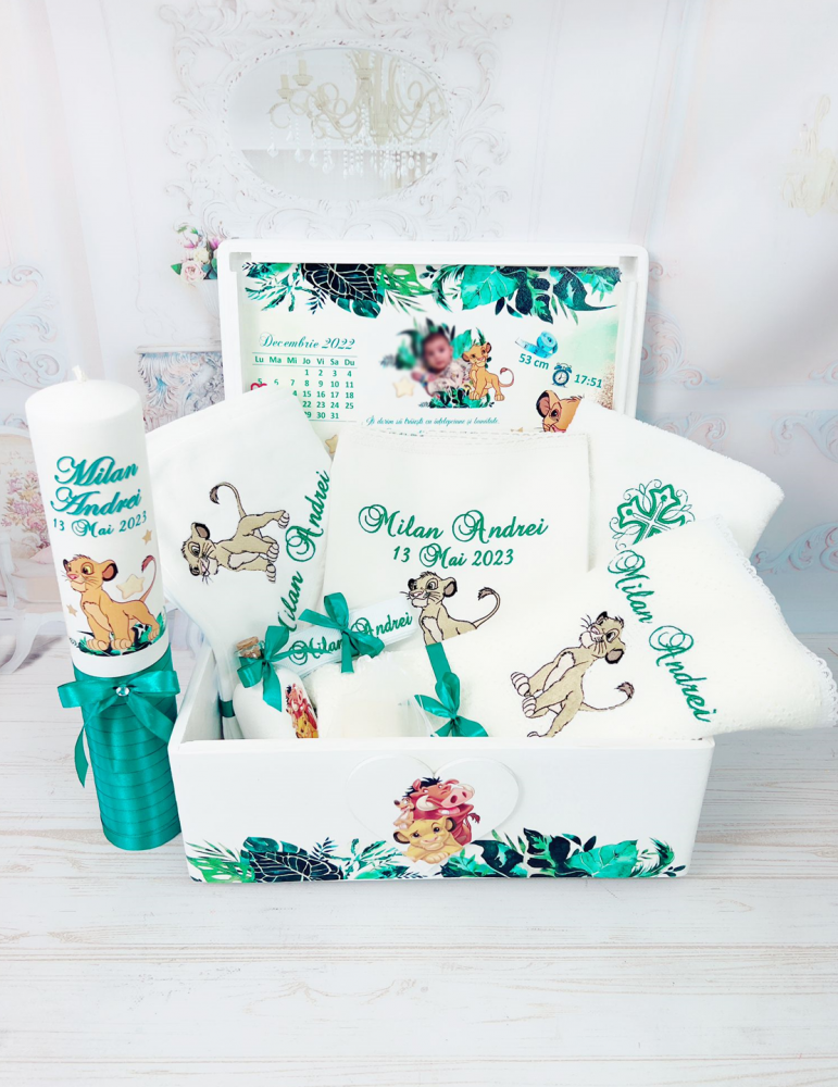 Ce contine setul de botez cu tematica "Regele Simba"?