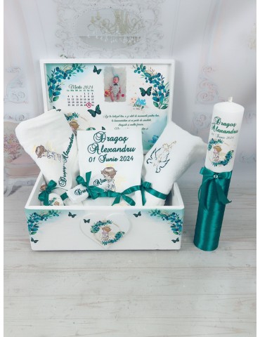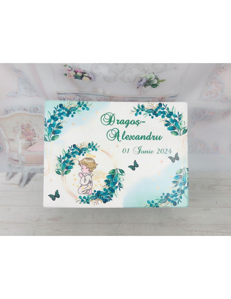 Set botez baiat personalizat - ingeras- nuante de verde