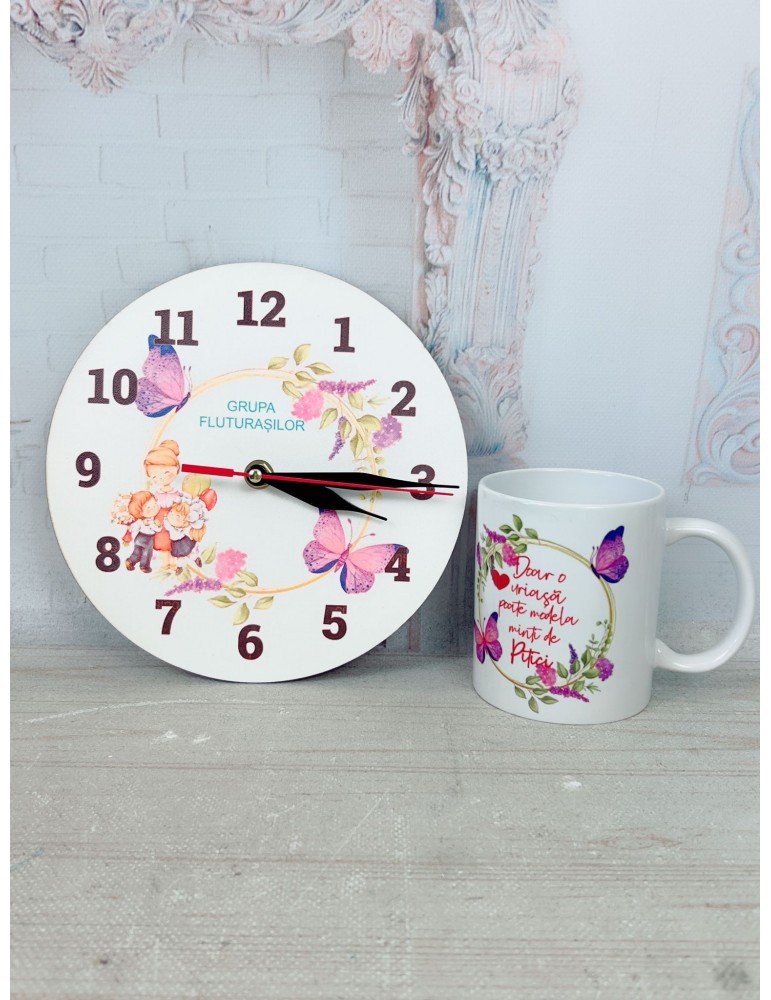 • Ceas personalizat cu tematica specifica Craciunului si cu numele grupei, un accesoriu elegant si unic, care va infrumuseta biroul educatoarei si va adauga un strop de magie sarbatorilor.