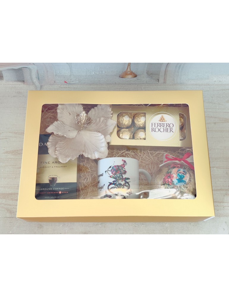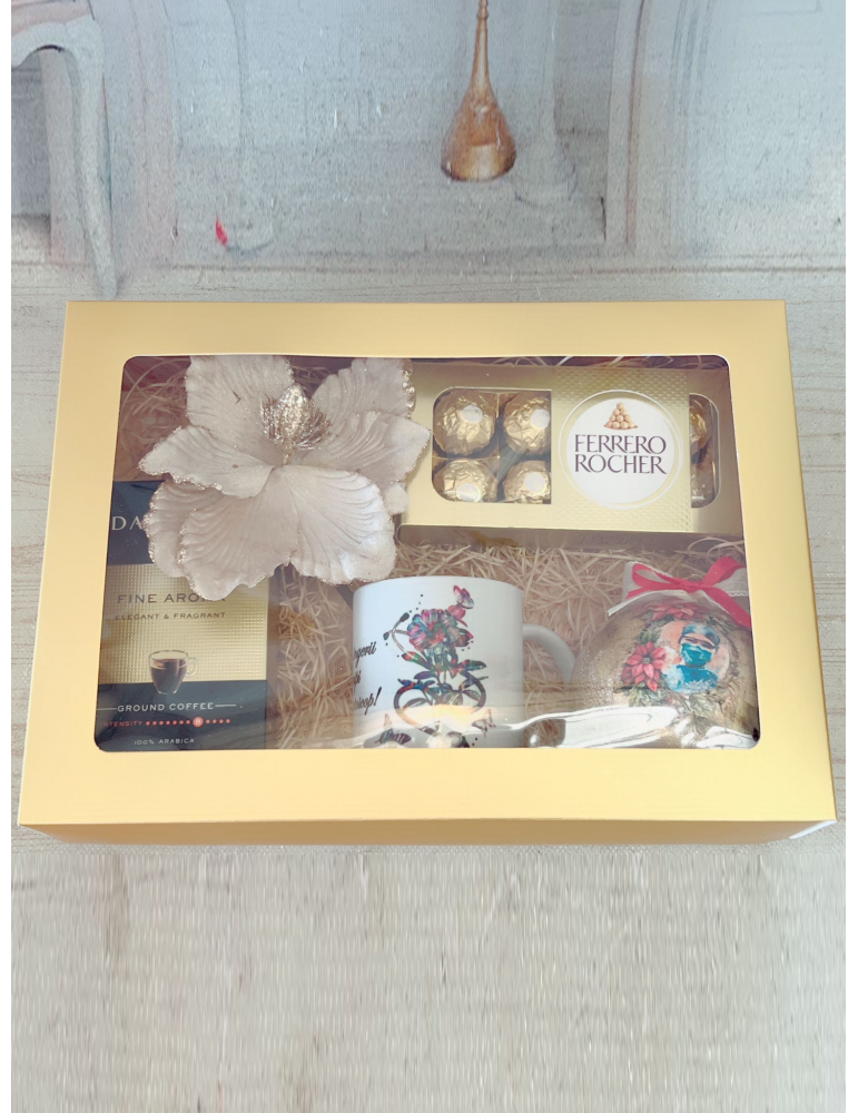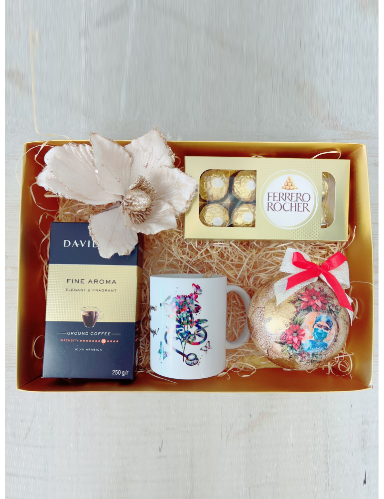 Setul cadou pentru doctori si asistente include un glob personalizat lucrat manual, o cana personalizata cu mesaj, bomboane Ferrero Rocher, cafea Davidoff si o decoratiune de Craciun. Toate produsele sunt ambalate intr-o cutie cadou eleganta, fiind cadoul perfect pentru a arata aprecierea fata de profesionistii din domeniul sanatatii.