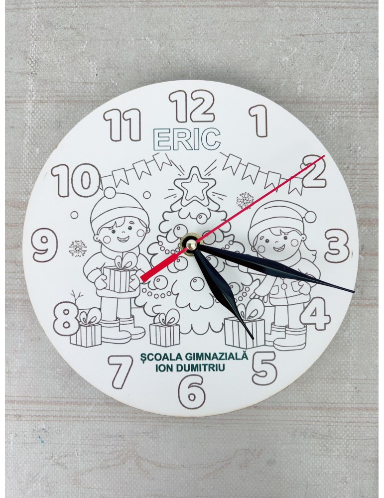 Tematica ceasului se adapteaza in functie de nevoile clasei/grupei si poate fi personalizat cu numele fiecarui copil + numele unitatii scolare.
