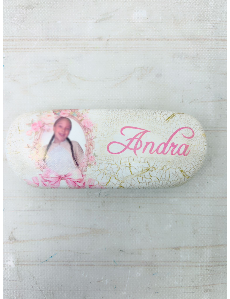 Tocul de ochelari personalizat este un cadou elegant si functional, creat manual cu tehnica decoupage. Fiecare toc este vopsit manual si decorat cu fotografie proprie si texte personalizate, care pot fi adaptate in functie de dorintele tale. Acesta poate include detalii suplimentare, cum ar fi foita aurie, crapaturi si patina de antichizare, pentru un efect vintage si sofisticat. Un accesoriu unic, perfect pentru persoanele care poarta ochelari, fiind o alegere excelenta pentru orice ocazie speciala.