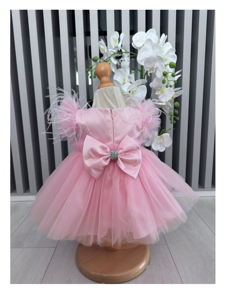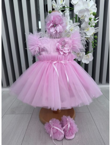 Această rochiță de botez cu tulle este alegerea ideală pentru o fetiță care urmează să fie creștinată, îmbinând eleganța cu delicatețea. Confectionată din materiale premium, cu un design sofisticat, rochia impresionează prin detalii fine și un croi diafan. Penele adaugă un plus de rafinament, oferind o notă de grație și unicitate.