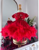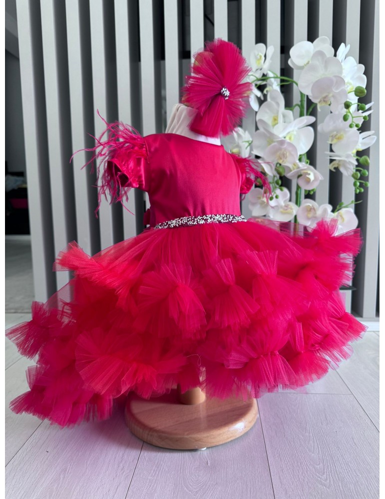 Această rochiță de botez cu tulle este alegerea ideală pentru o fetiță care urmează să fie creștinată, îmbinând eleganța cu delicatețea. Confectionată din materiale premium, cu un design sofisticat, rochia impresionează prin detalii fine și un croi diafan. Penele adaugă un plus de rafinament, oferind o notă de grație și unicitate.