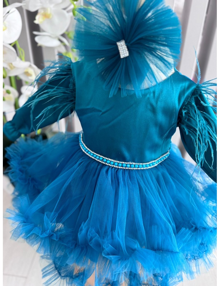 Această rochiță de botez cu tulle este alegerea ideală pentru o fetiță care urmează să fie creștinată, îmbinând eleganța cu delicatețea. Confectionată din materiale premium, cu un design sofisticat, rochia impresionează prin detalii fine și un croi diafan. Penele adaugă un plus de rafinament, oferind o notă de grație și unicitate.