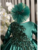 Confecționată din materiale premium, rochia impresionează prin textura fină a țesăturilor și prin croiul diafan, care conferă un aer de noblețe. Penele, atent aplicate, adaugă o notă de grație și unicitate, făcând ca fiecare mișcare a micuței să pară desprinsă dintr-un basm.