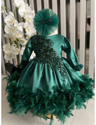 Rochiță de botez elegantă cu pene – rafinament și delicatețe pentru micile prințese