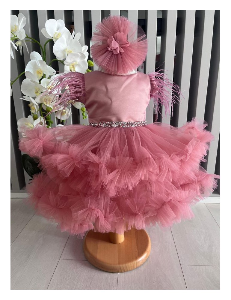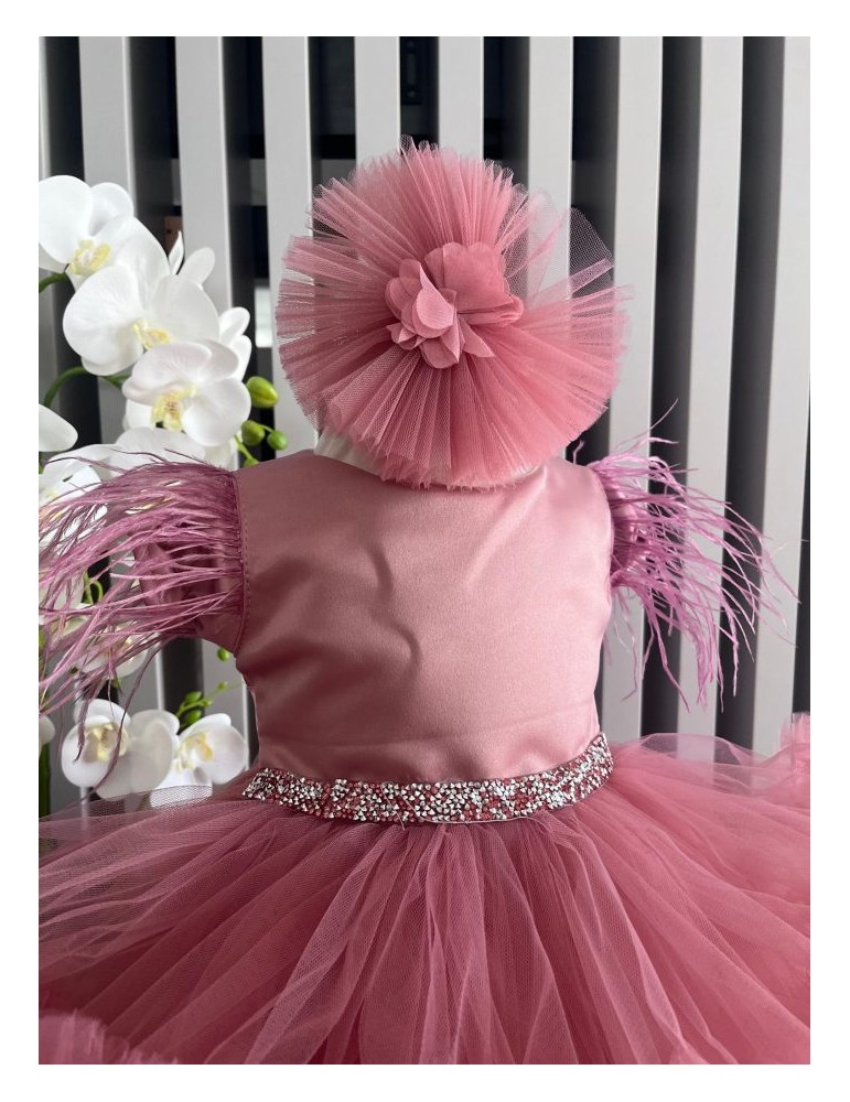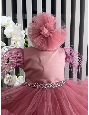 Această rochiță de botez cu tulle este alegerea ideală pentru o fetiță care urmează să fie creștinată, îmbinând eleganța cu delicatețea. Confectionată din materiale premium, cu un design sofisticat, rochia impresionează prin detalii fine și un croi diafan. Penele adaugă un plus de rafinament, oferind o notă de grație și unicitate.