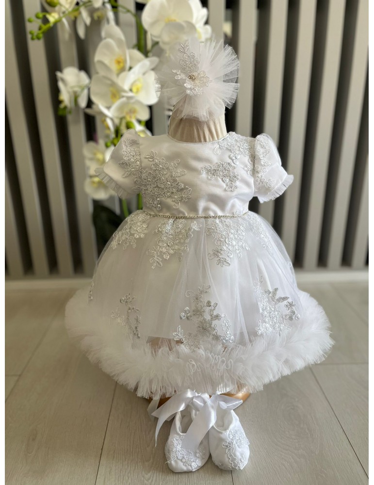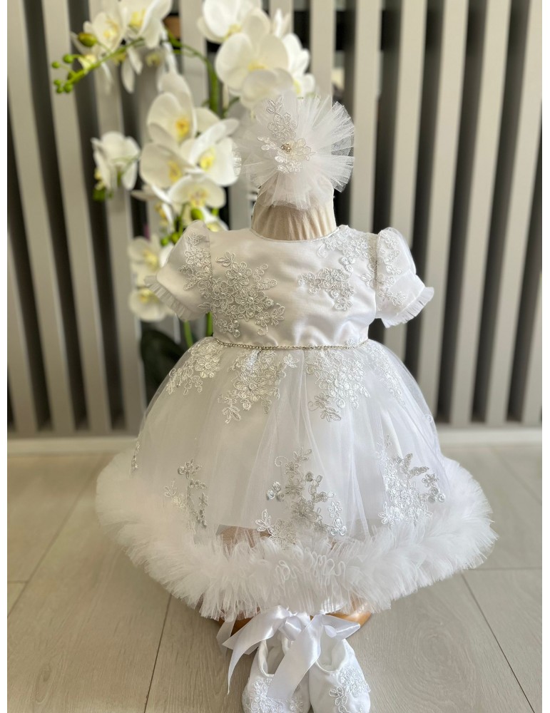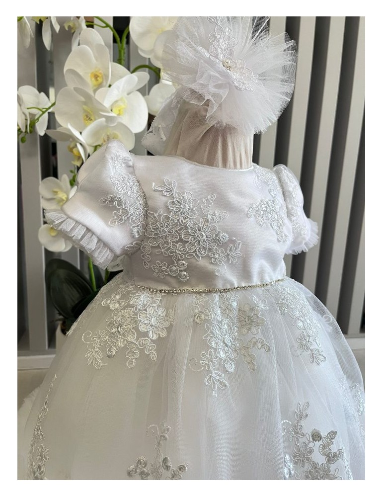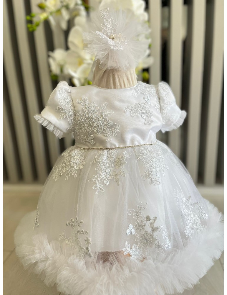Rochie de botez pentru fetite tulle si dantela - alb