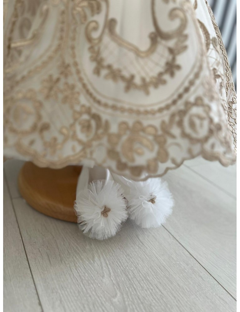 Se asortează perfect cu un trusou de botez superb, completând armonios întregul eveniment. Fiecare detaliu este gândit pentru a oferi confort și libertate de mișcare micuței domnișoare, astfel încât să se simtă specială în cea mai importantă zi. Alegerea perfectă pentru părinții care doresc un look elegant și memorabil pentru botezul fetiței lor!