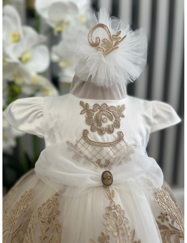 Alegerea perfectă pentru părinții care își doresc o ținută memorabilă, sofisticată și elegantă pentru micuța lor prințesă! Fiecare rochiță este realizată cu multă atenție și dragoste, pentru ca ziua botezului să fie una de neuitat!