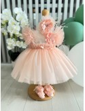 Se asortează perfect cu un trusou de botez elegant, creând un ansamblu armonios și spectaculos, potrivit pentru o zi atât de specială. Rochița este disponibilă într-o varietate de nuanțe delicate, astfel încât să se potrivească tematicii botezului și preferințelor părinților.