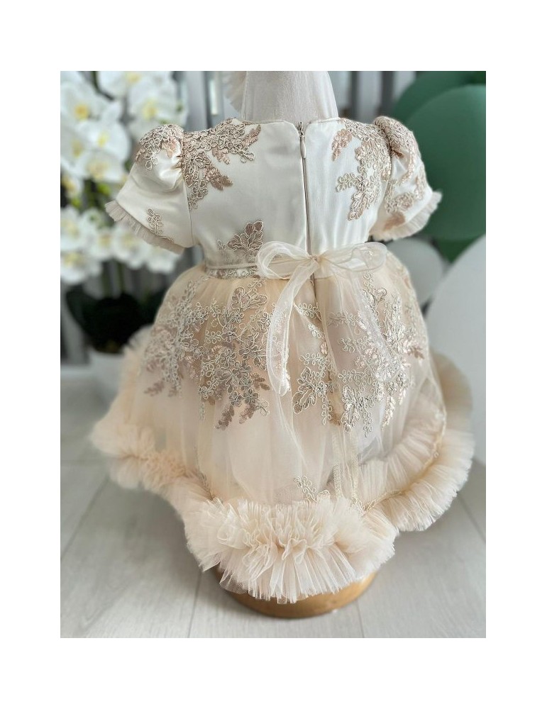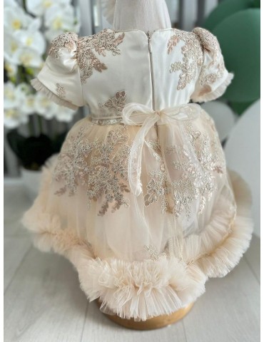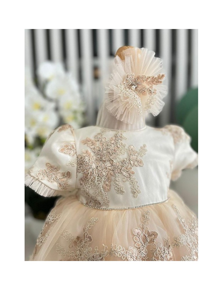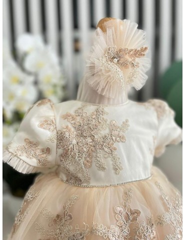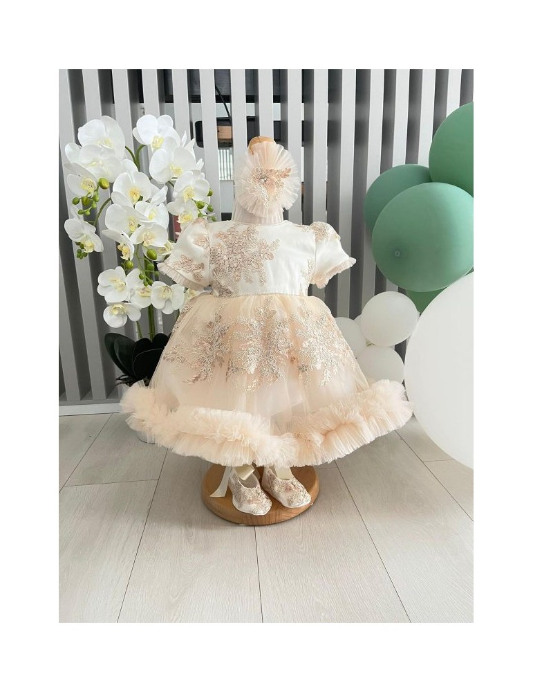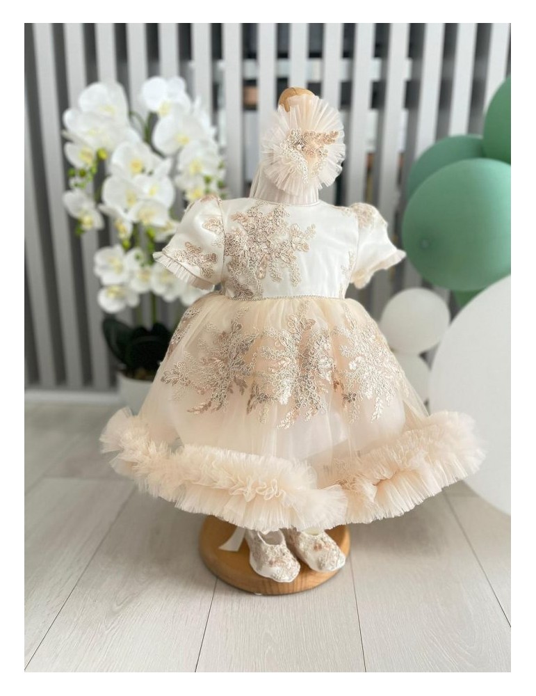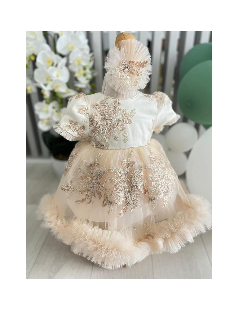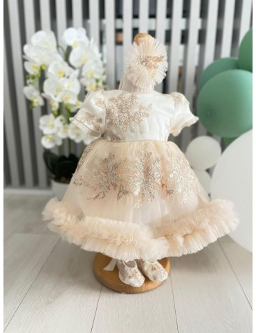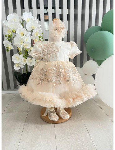 Se asortează perfect cu un trusou de botez superb, completând armonios întregul eveniment. Fiecare detaliu este gândit pentru a oferi confort și libertate de mișcare micuței domnișoare, astfel încât să se simtă specială în cea mai importantă zi. Alegerea perfectă pentru părinții care doresc un look elegant și memorabil pentru botezul fetiței lor!