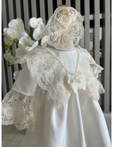Se asortează perfect cu un trusou de botez superb, completând armonios întregul eveniment. Fiecare detaliu este gândit pentru a oferi confort și libertate de mișcare micuței domnișoare, astfel încât să se simtă specială în cea mai importantă zi. Alegerea perfectă pentru părinții care doresc un look elegant și memorabil pentru botezul fetiței lor!