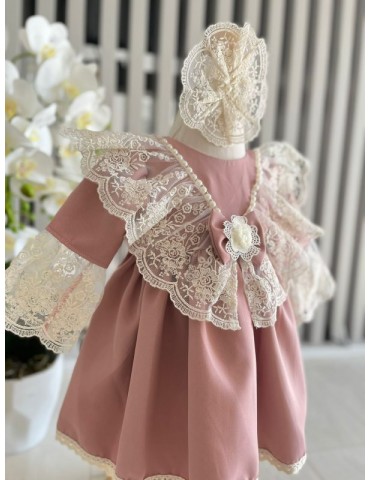 Rochiță de botez elegantă cu catifea si dantela – rafinament și delicatețe pentru micile prințese