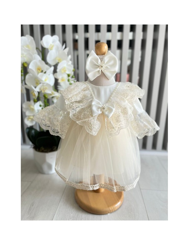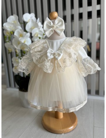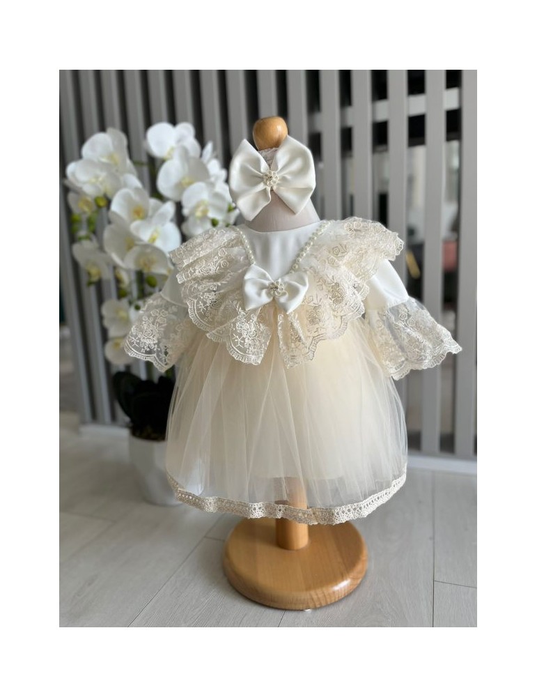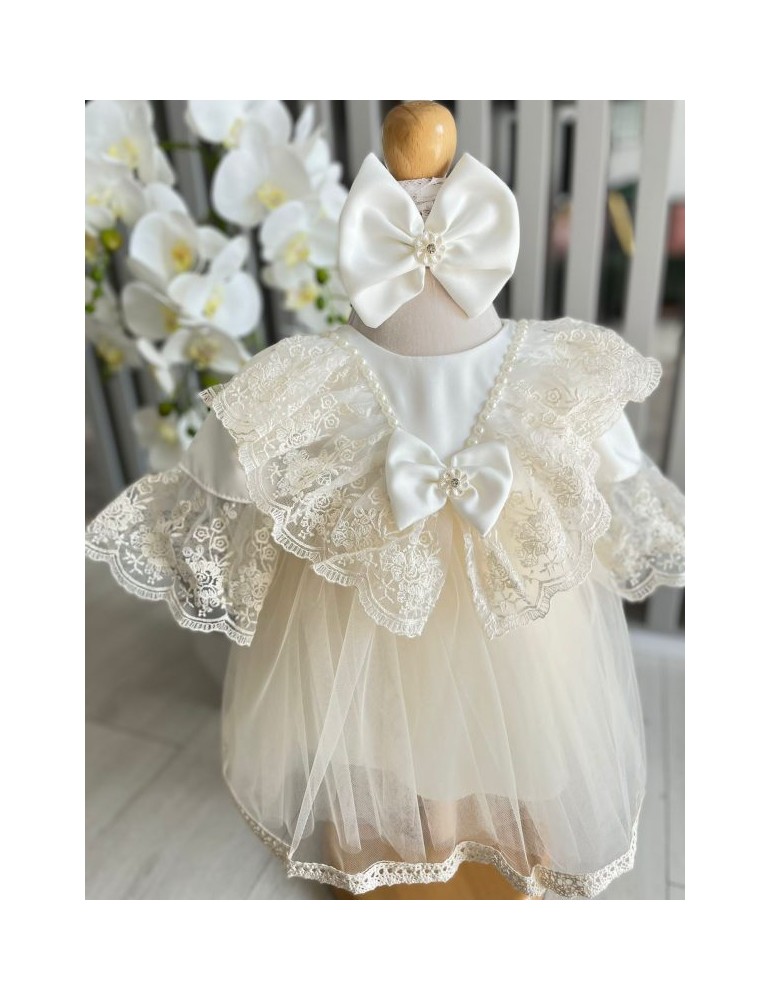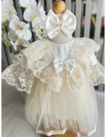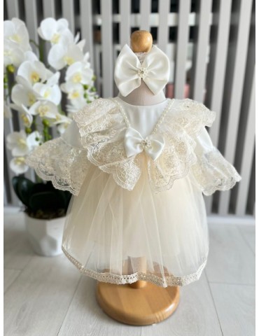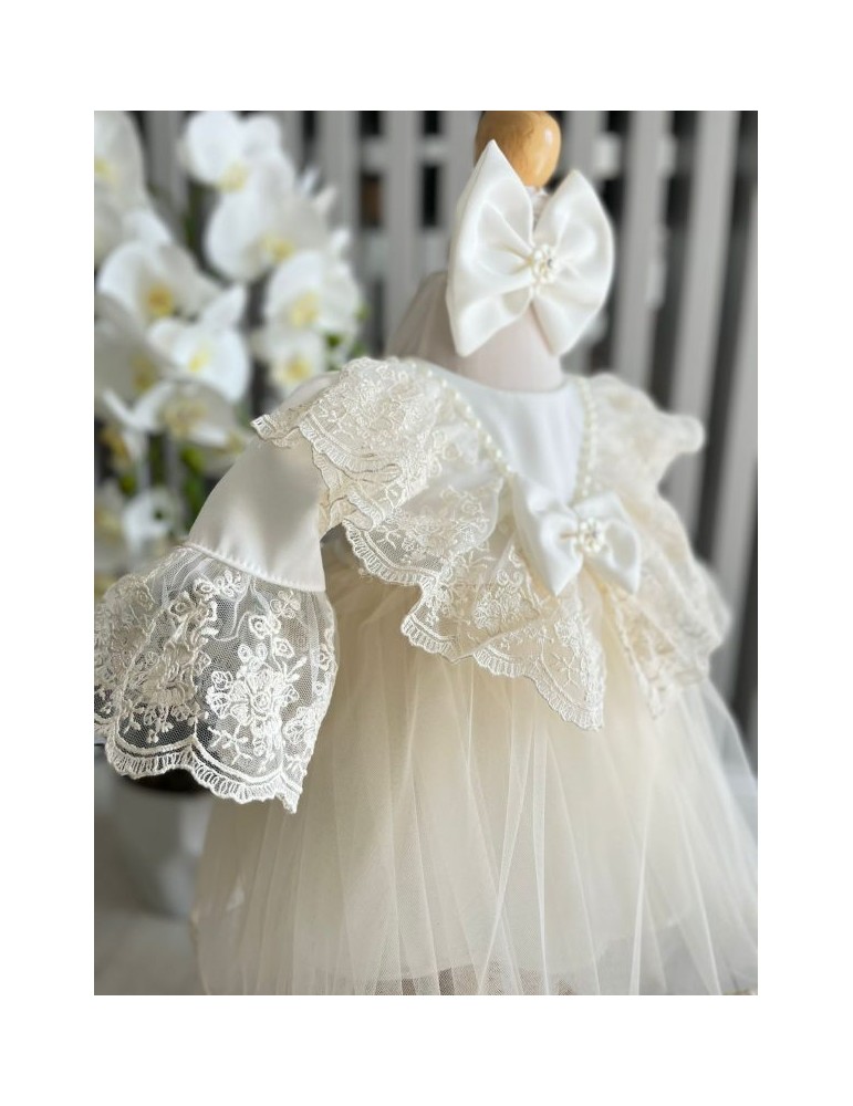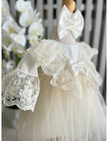 Rochie de botez pentru fetite cu tulle si dantela - ivoire