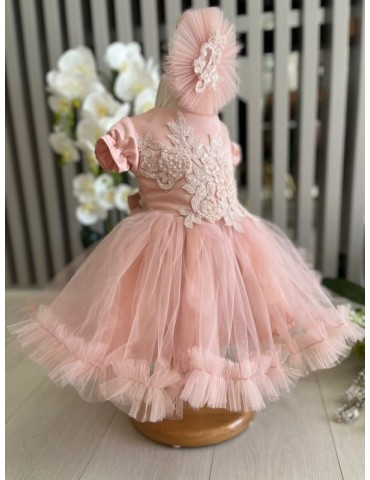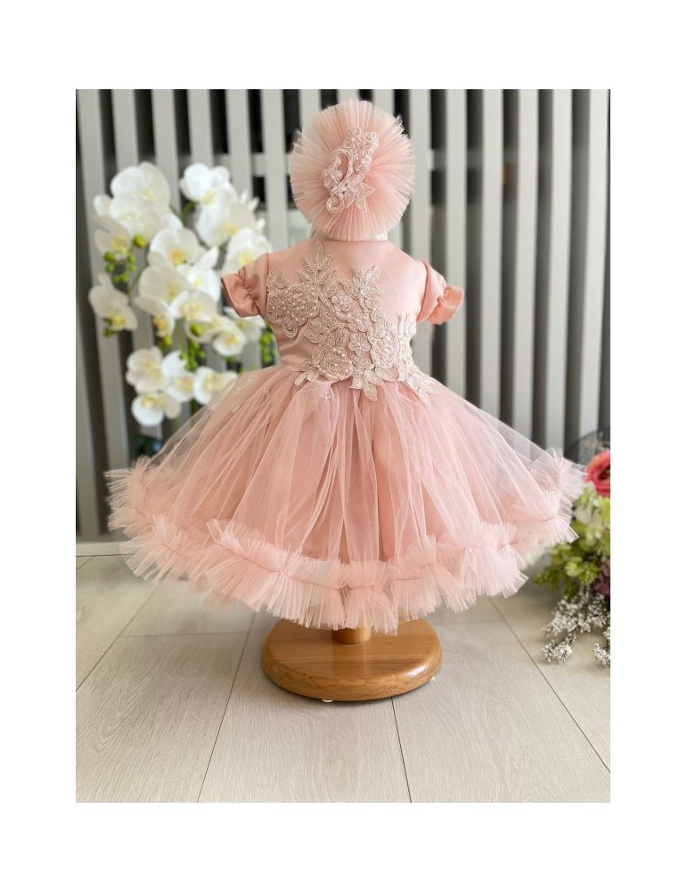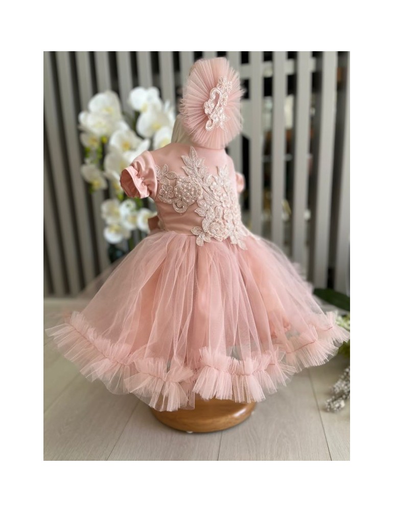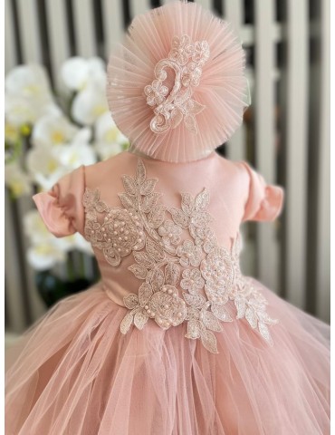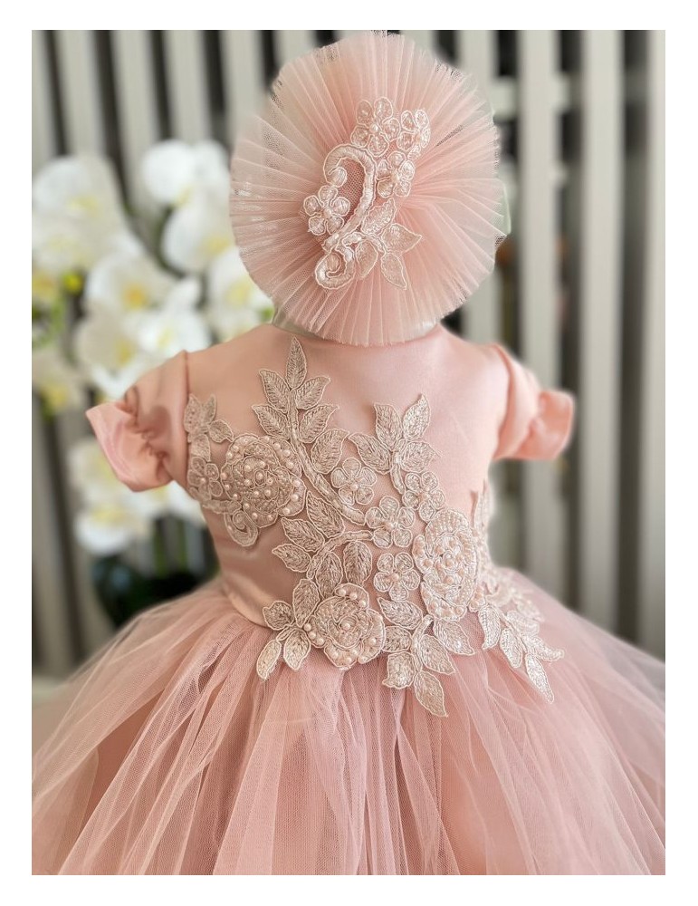 Rochiță de botez elegantă cu tulle si dantela – rafinament și delicatețe pentru micile prințese