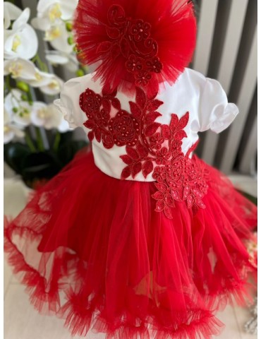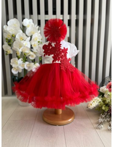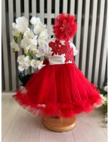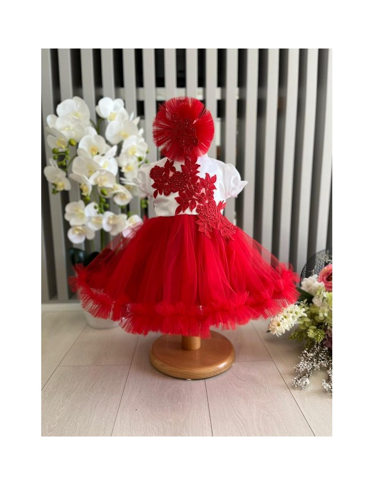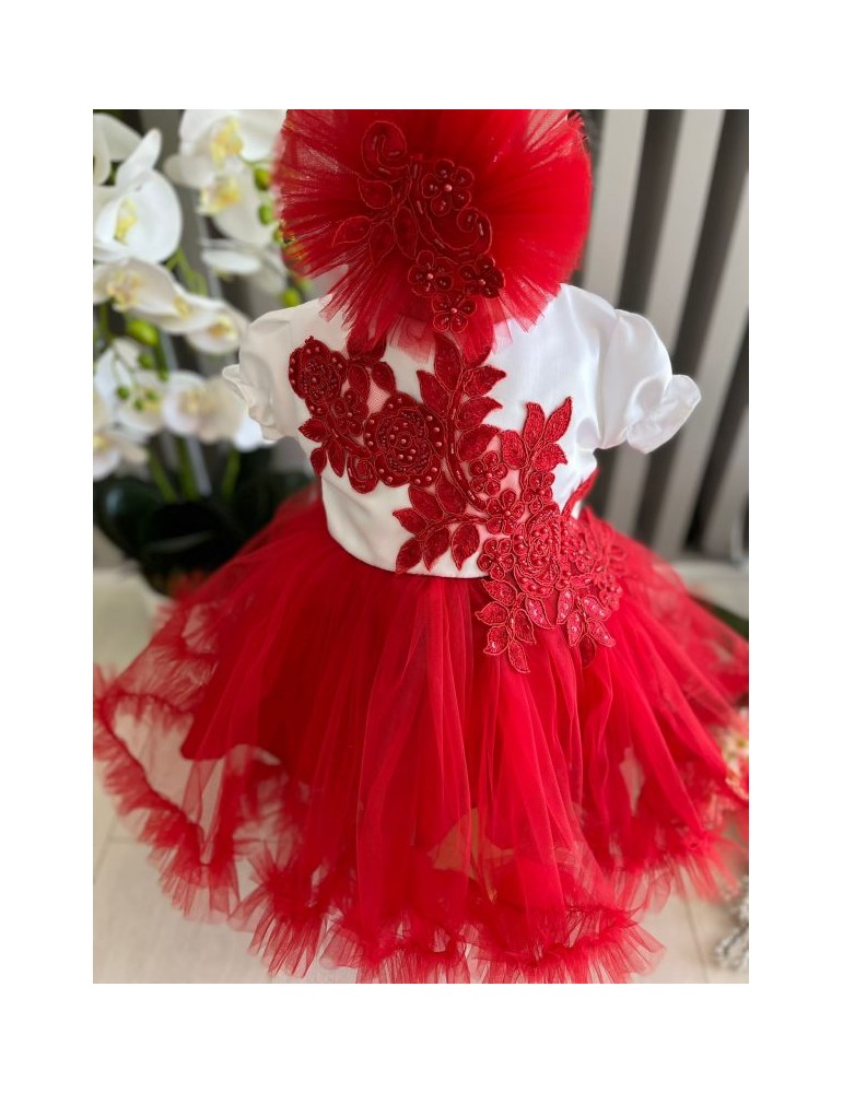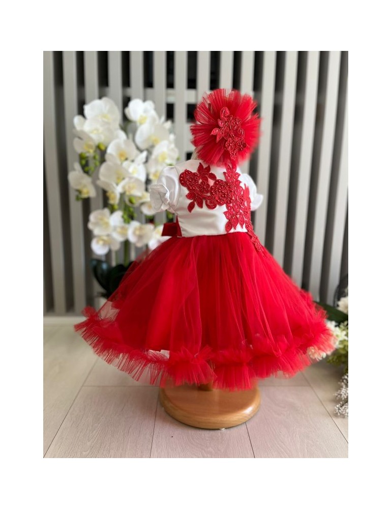 Rochita de botez cu tulle - nuante rosu
