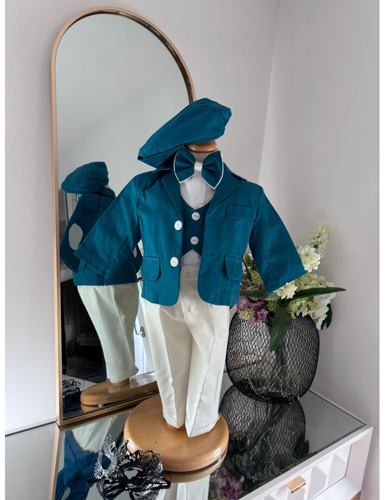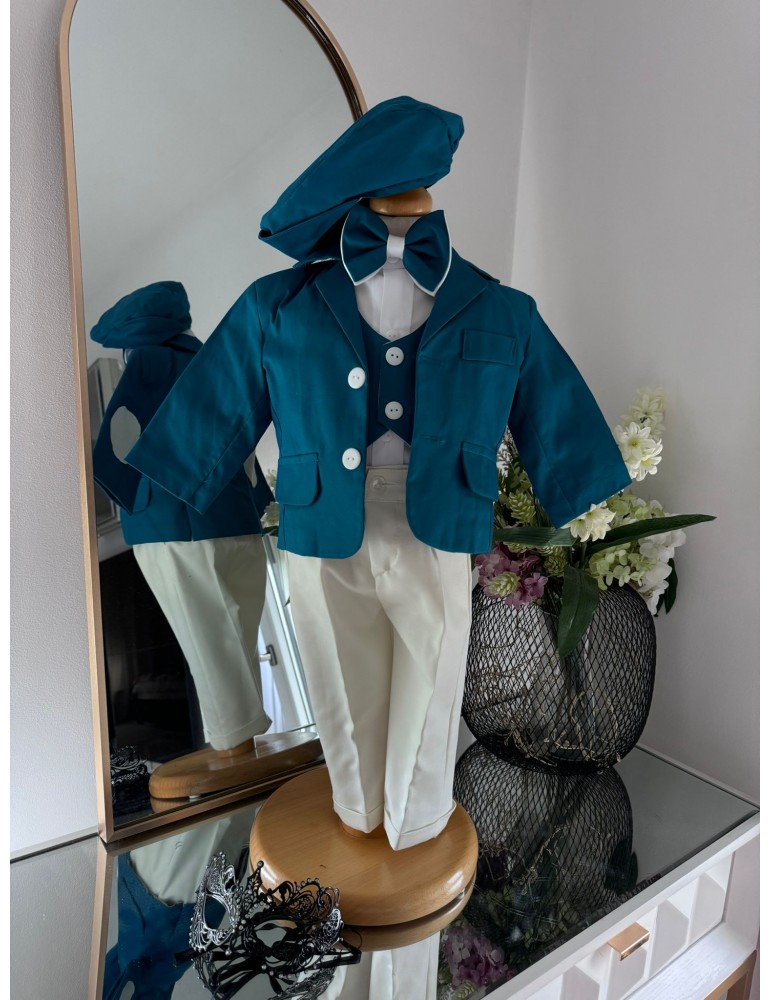 Descoperă costumul de botez pentru baieti in nuante albastru si alb, un costum elegant de botez pentru băieți, perfect pentru o ceremonie de neuitat. Realizat din materiale de calitate, acest costum rafinat adaugă un plus de stil și eleganță micuțului tău în ziua specială.