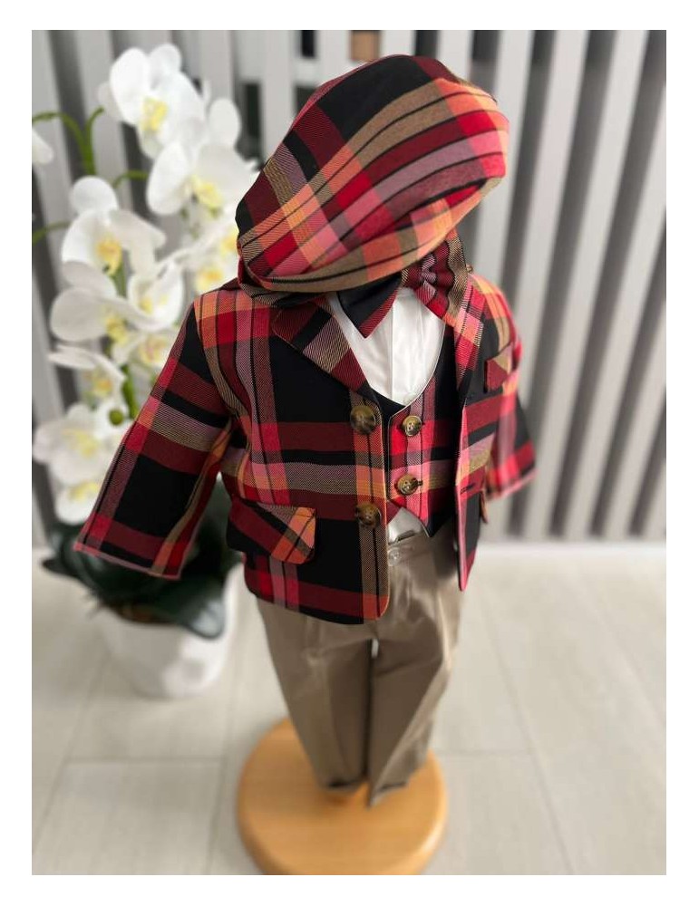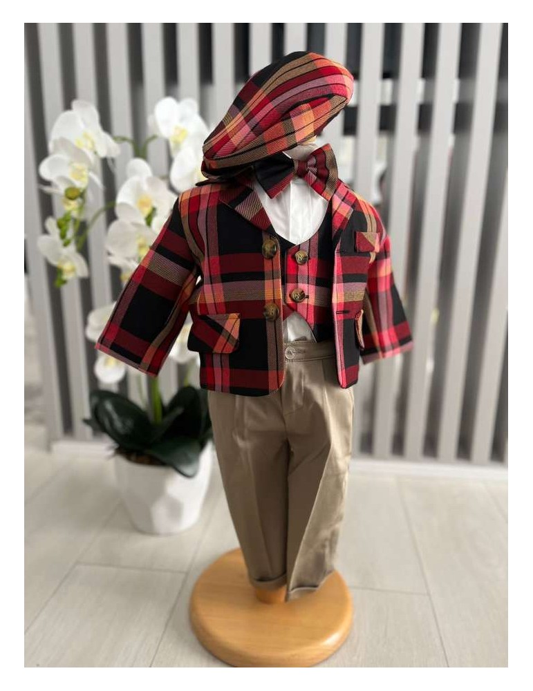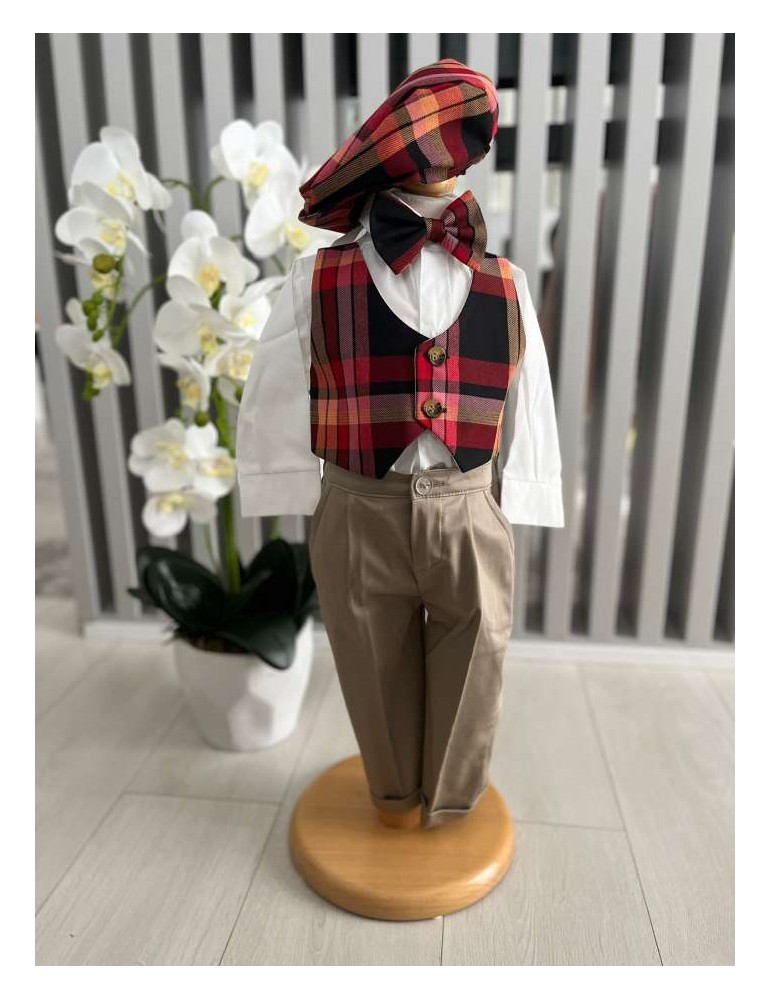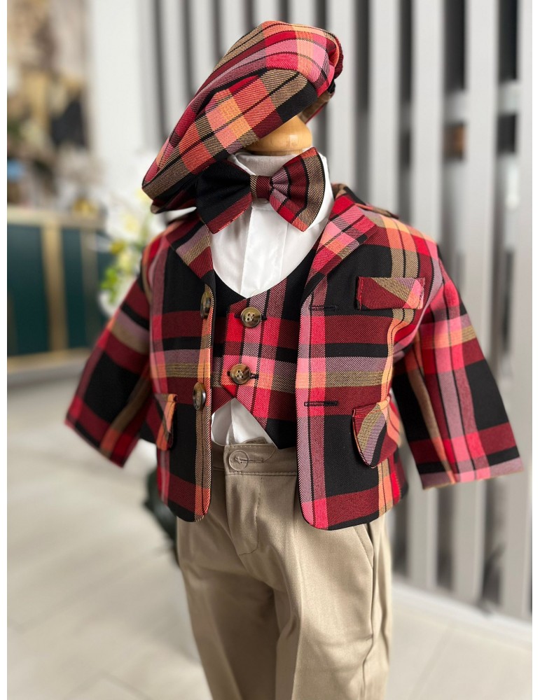 Costum de botez pentru baiat cu carouri