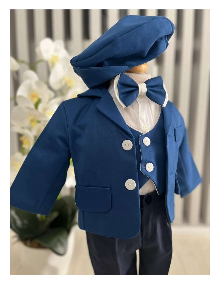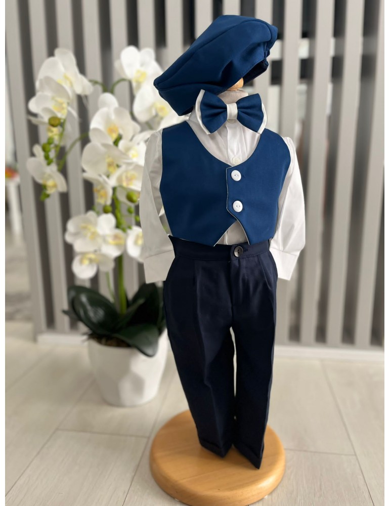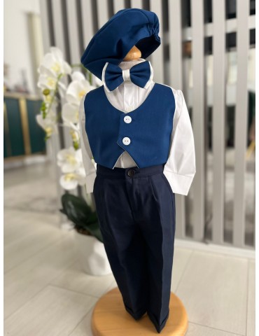Descoperă costumul de botez pentru baieti in nuante albastru, un costum elegant de botez pentru băieți, perfect pentru o ceremonie de neuitat. Realizat din materiale de calitate, acest costum rafinat adaugă un plus de stil și eleganță micuțului tău în ziua specială.