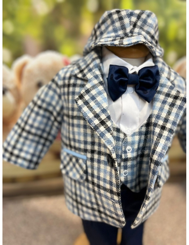 Costum de botez pentru baiat cu carouri