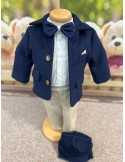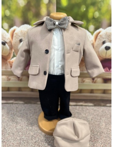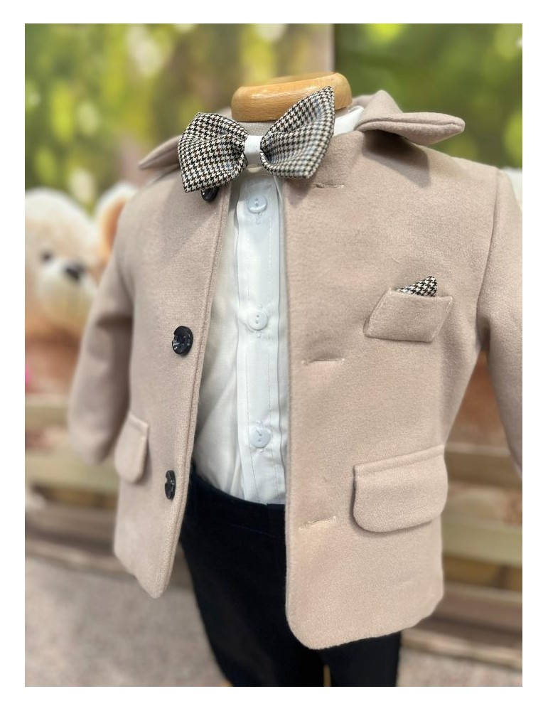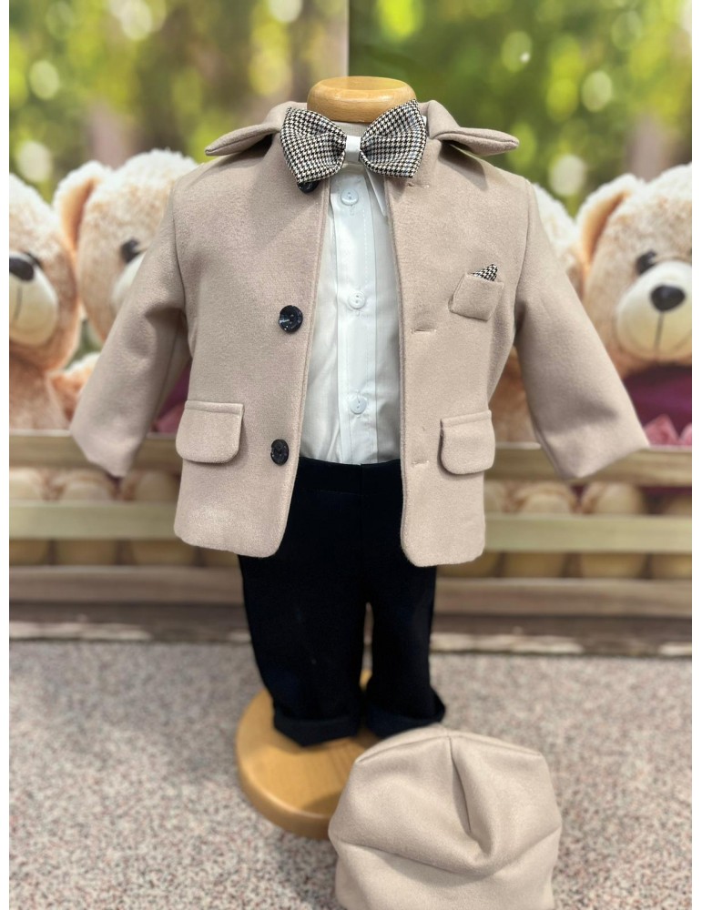 Descoperă costumul de botez pentru baieti cu crem, un costum elegant de botez pentru băieți, perfect pentru o ceremonie de neuitat. Realizat din materiale de calitate, acest costum rafinat adaugă un plus de stil și eleganță micuțului tău în ziua specială.