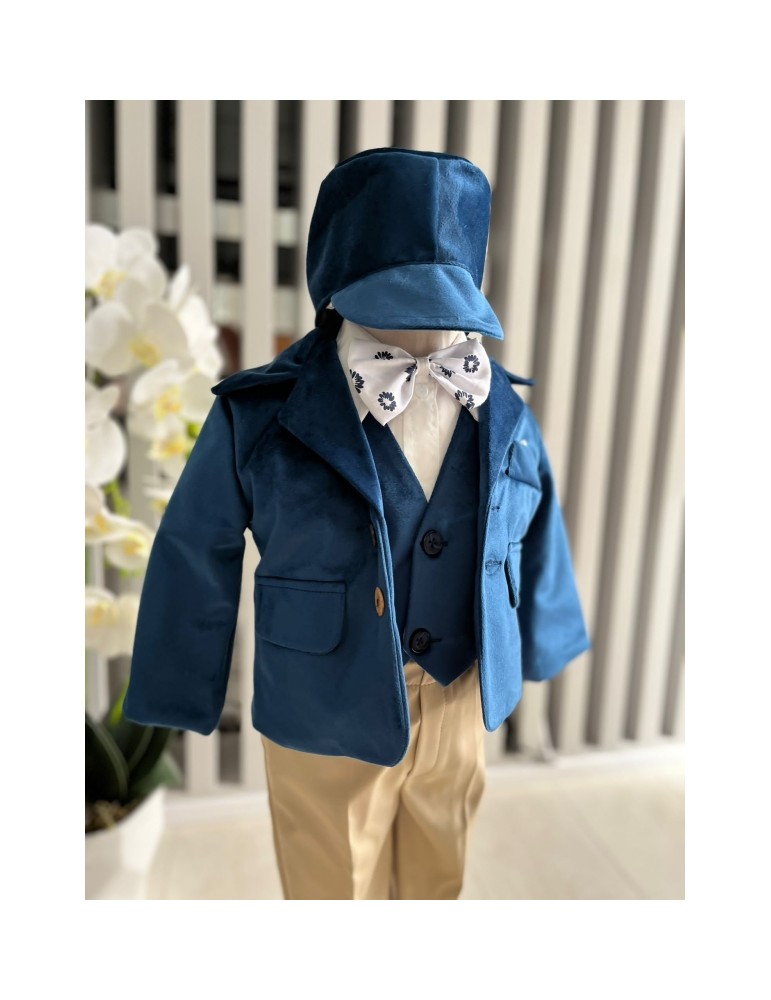 Descoperă costumul de botez pentru baieti cu albastru, un costum elegant de botez pentru băieți, perfect pentru o ceremonie de neuitat. Realizat din materiale de calitate, acest costum rafinat adaugă un plus de stil și eleganță micuțului tău în ziua specială.