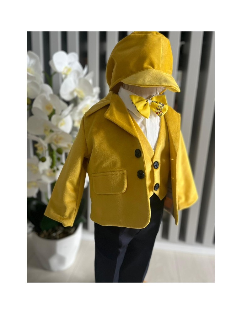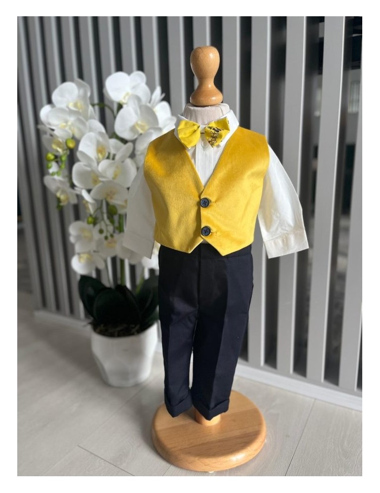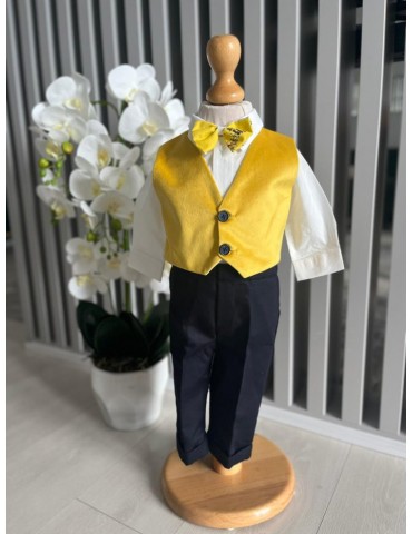 Costum de botez pentru baiat cu galben