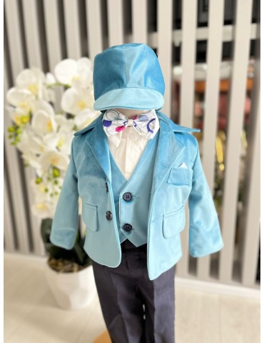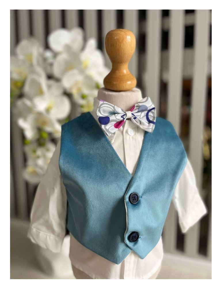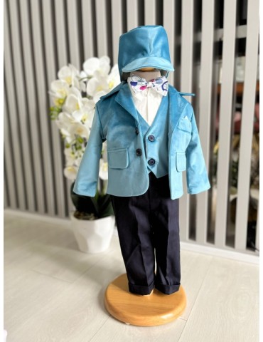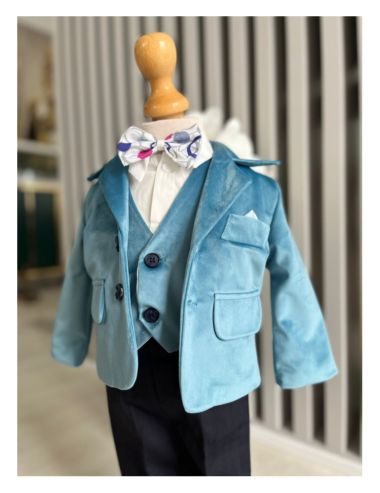 Descoperă costumul de botez pentru baieti cu bleo, un costum elegant de botez pentru băieți, perfect pentru o ceremonie de neuitat. Realizat din materiale de calitate, acest costum rafinat adaugă un plus de stil și eleganță micuțului tău în ziua specială.