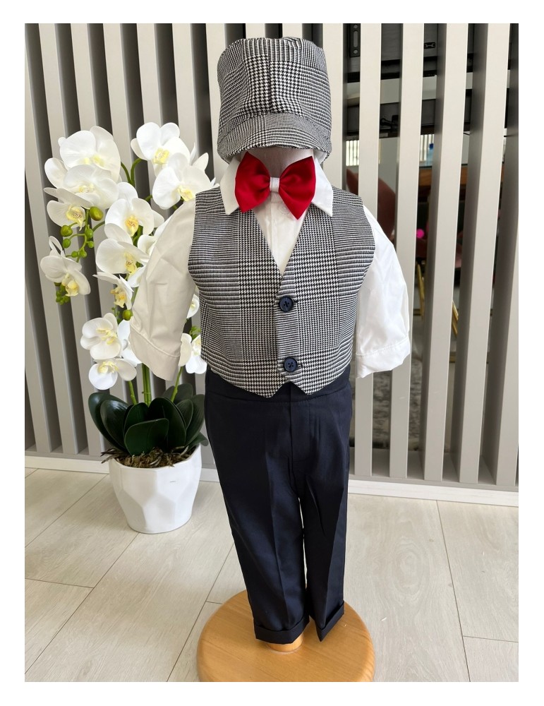 Descoperă costumul de botez pentru baieti cu gri, un costum elegant de botez pentru băieți, perfect pentru o ceremonie de neuitat. Realizat din materiale de calitate, acest costum rafinat adaugă un plus de stil și eleganță micuțului tău în ziua specială.