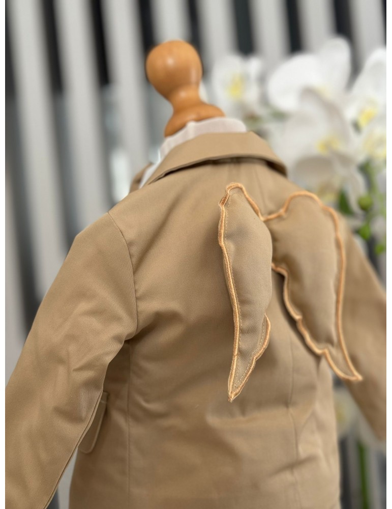 Descoperă costumul de botez pentru baieti cu crem, un costum elegant de botez pentru băieți, perfect pentru o ceremonie de neuitat. Realizat din materiale de calitate, acest costum rafinat adaugă un plus de stil și eleganță micuțului tău în ziua specială.