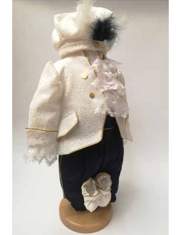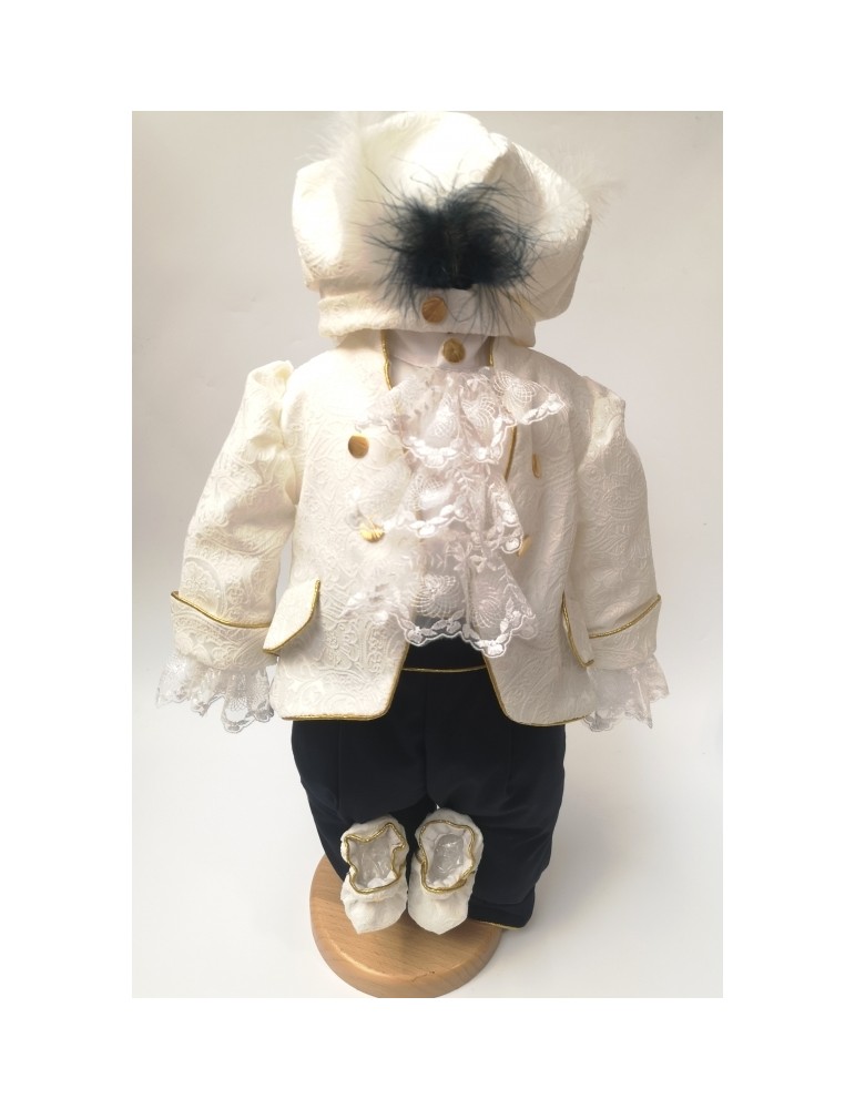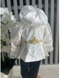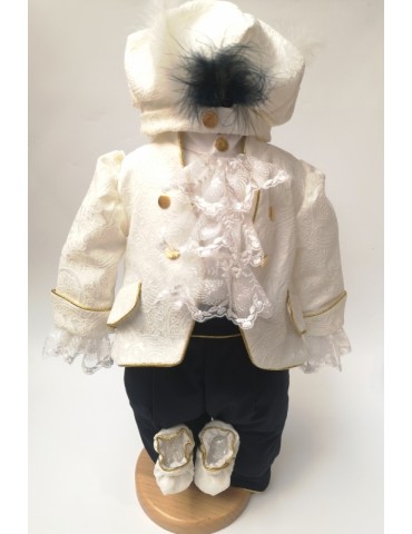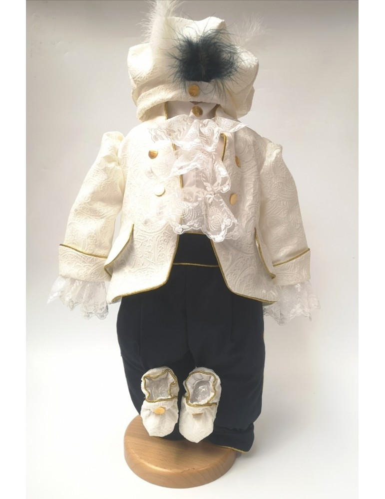Descoperă costumul de botez pentru baieti cu alb,  un costum elegant de botez pentru băieți, perfect pentru o ceremonie de neuitat. Realizat din materiale de calitate, acest costum rafinat adaugă un plus de stil și eleganță micuțului tău în ziua specială.