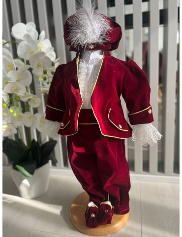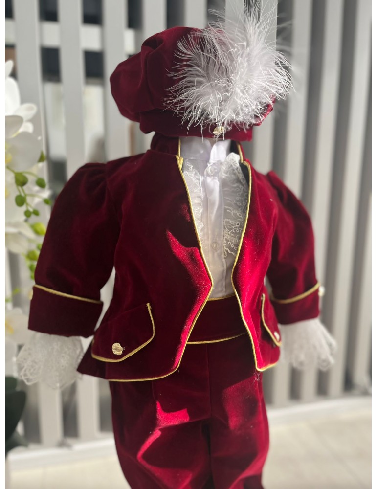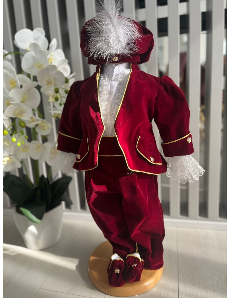Descoperă costumul de botez pentru baieti cu grena,  un costum elegant de botez pentru băieți, perfect pentru o ceremonie de neuitat. Realizat din materiale de calitate, acest costum rafinat adaugă un plus de stil și eleganță micuțului tău în ziua specială.