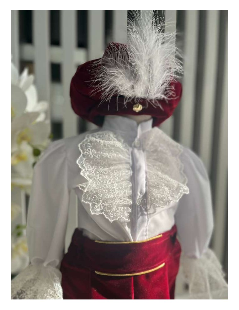 Pretul se refera la setul format din: sacou, camasa,vesta, pantalon, caciula, botosei.