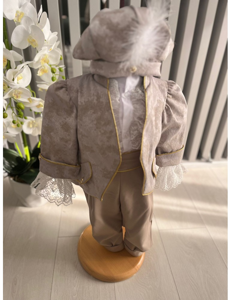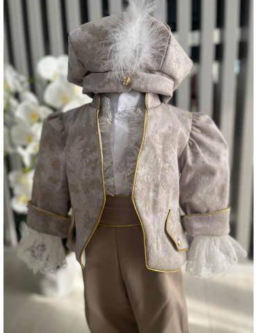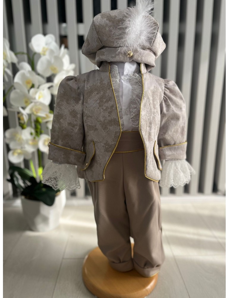 Descoperă costumul de botez pentru baieti cu crem, un costum elegant de botez pentru băieți, perfect pentru o ceremonie de neuitat. Realizat din materiale de calitate, acest costum rafinat adaugă un plus de stil și eleganță micuțului tău în ziua specială.