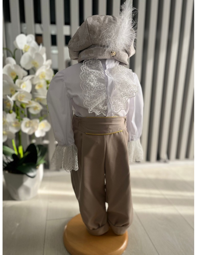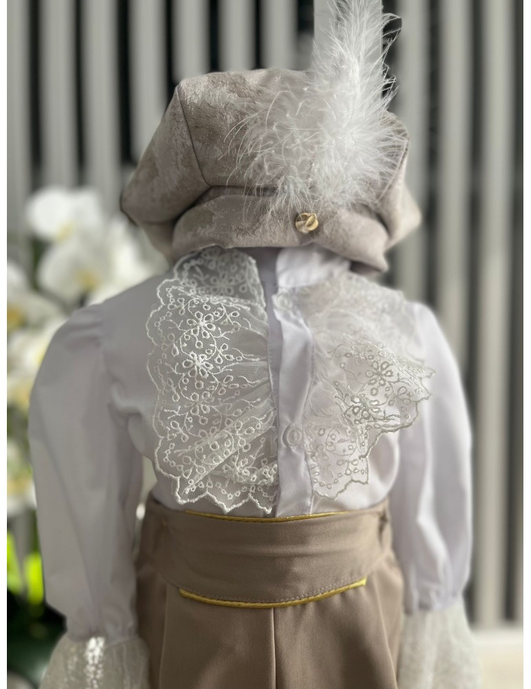 Pretul se refera la setul format din: sacou, camasa,vesta, pantalon, caciula, botosei.