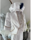 Designul său sofisticat se asortează armonios cu un trusou de botez și o cutie pentru amintiri în tonuri delicate, creând un set complet și elegant pentru acest eveniment unic. Croiala impecabilă și detaliile atent lucrate oferă atât confort, cât și un aspect distins, potrivit pentru momentele de neuitat.