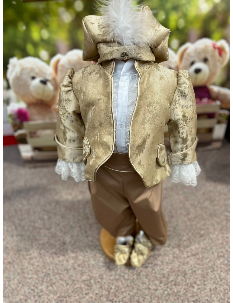 Costum de botez pentru baiat cu auriu