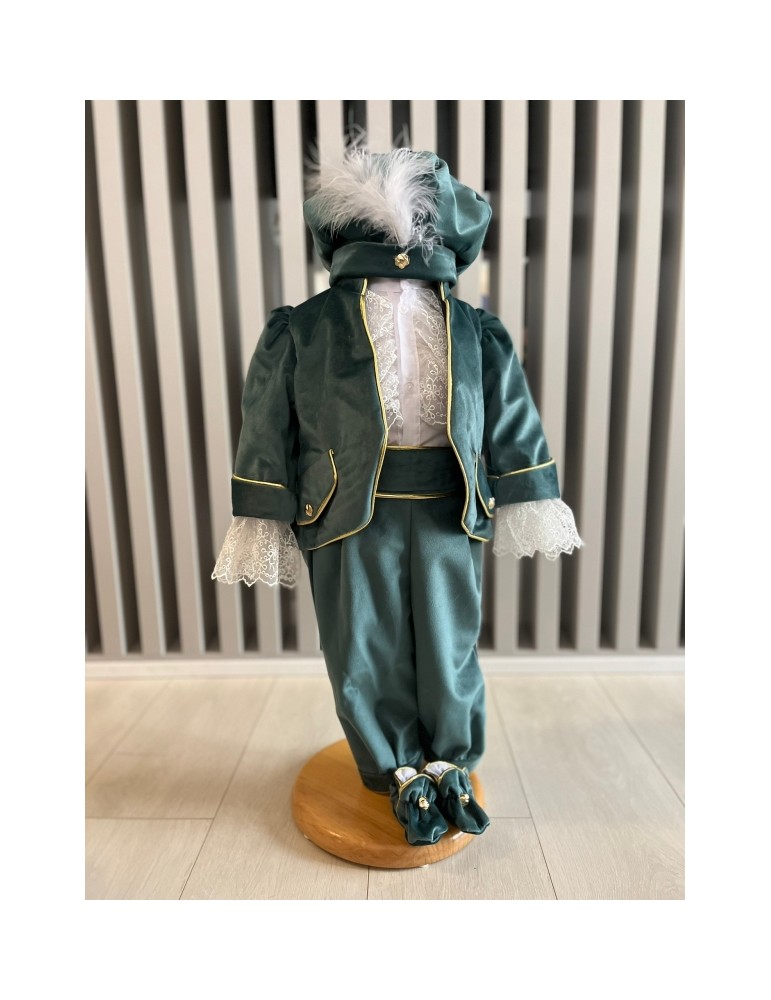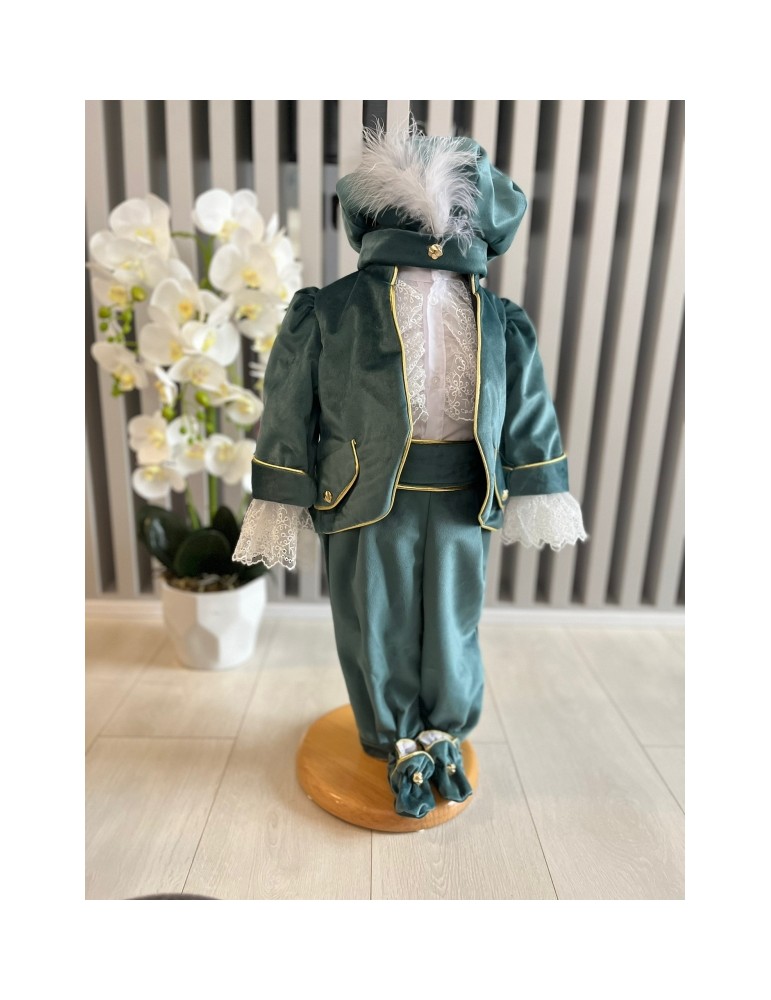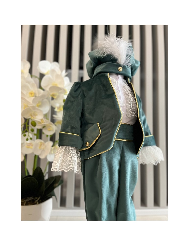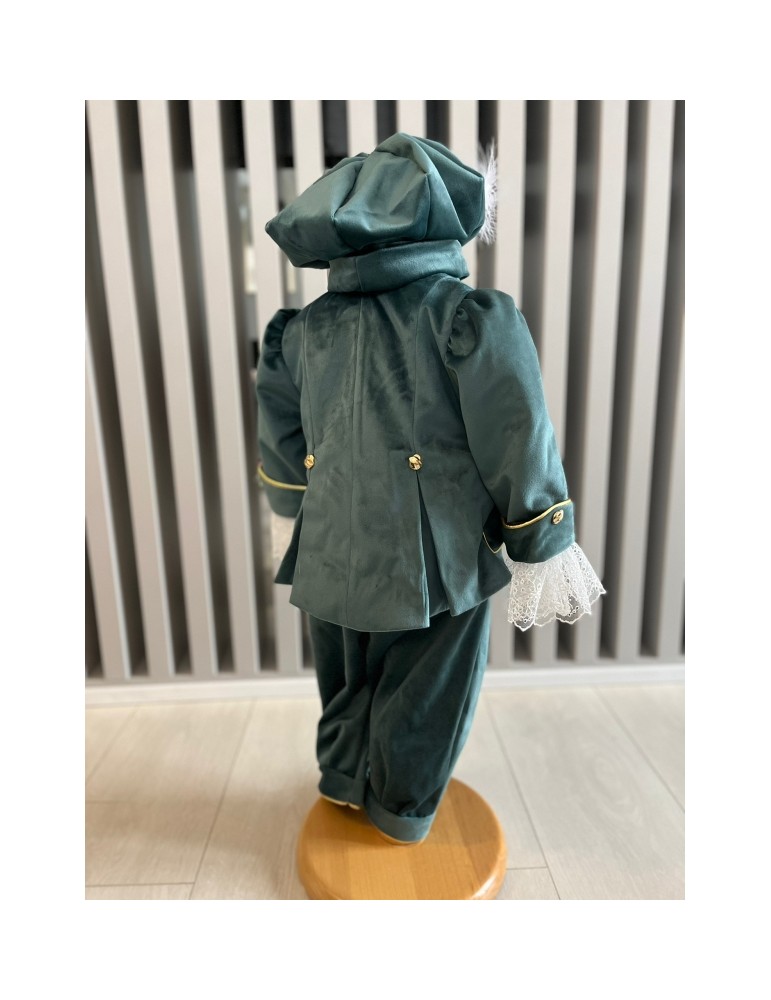 Descoperă costumul de botez pentru baieti cu nuante olive , un costum elegant de botez pentru băieți, perfect pentru o ceremonie de neuitat. Realizat din materiale de calitate, acest costum rafinat adaugă un plus de stil și eleganță micuțului tău în ziua specială.