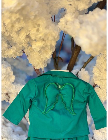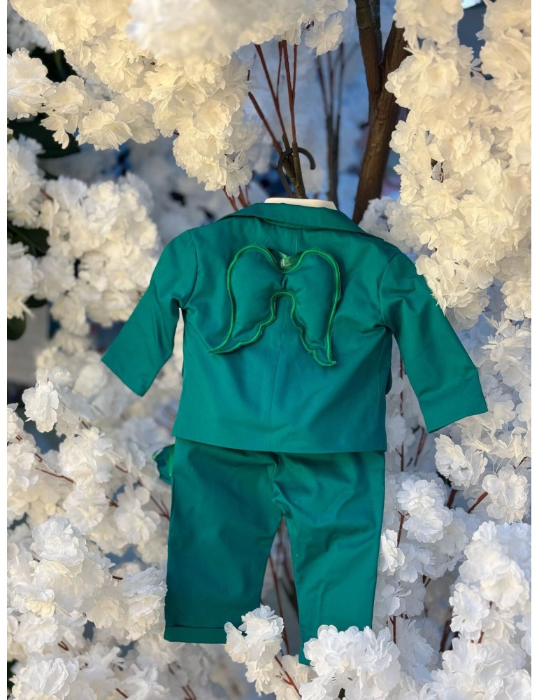 Costum de botez pentru baiat - model cu aripi verde